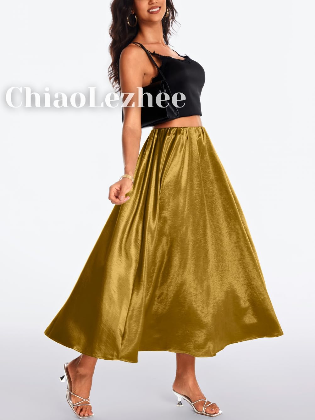 Women’s Heavy-Drape Satin Maxi Skirt, Elastic High Waisted